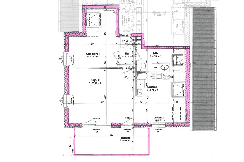 Dans un immeuble collectif, F2 de 50m² au 2ème étage comprenant une entrée, cuisine, séjour, 2 chambres, salle de bains avec wc, balcon.
