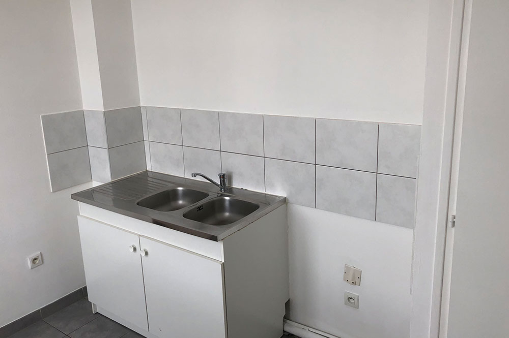 Dans un immeuble collectif, F2 de 45m² au 1er étage comprenant une, cuisine, salon/séjour, 1 chambre, salle de bains avec wc, dégagement.