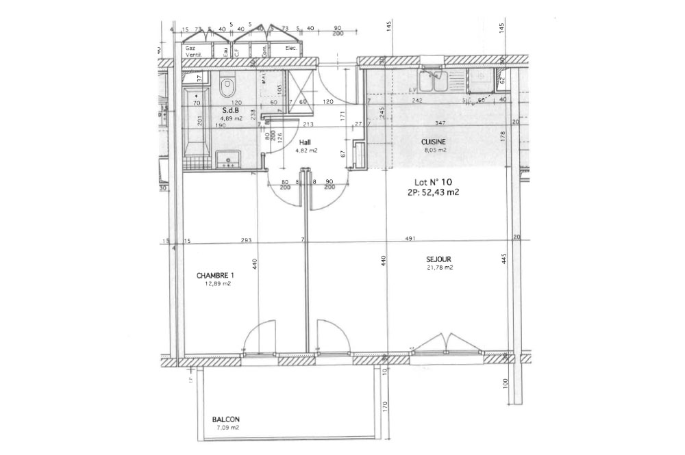 Dans un immeuble collectif, F2 de 52m² au 2ème étage comprenant une entrée, cuisine ouverte sur séjour, chambre, salle de bains, wc séparé, balcon.