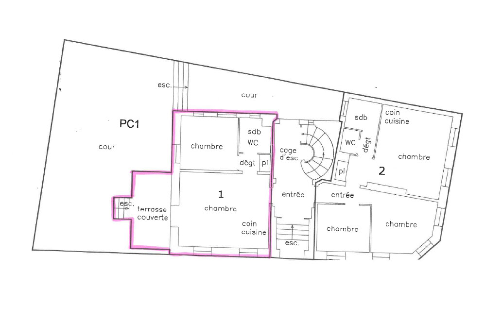 Dans un immeuble collectif, F2 de 40m² au RDC comprenant :