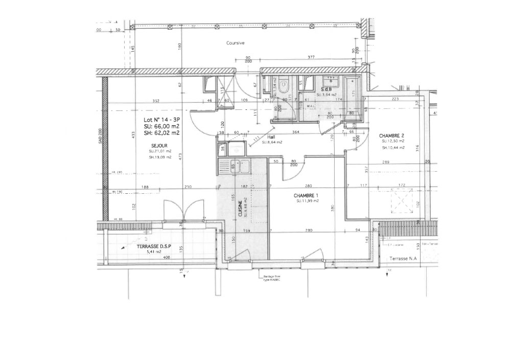 Appartement 3 pièce(s), 62m²
