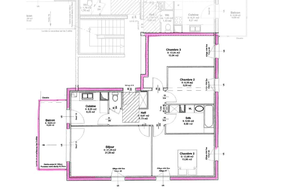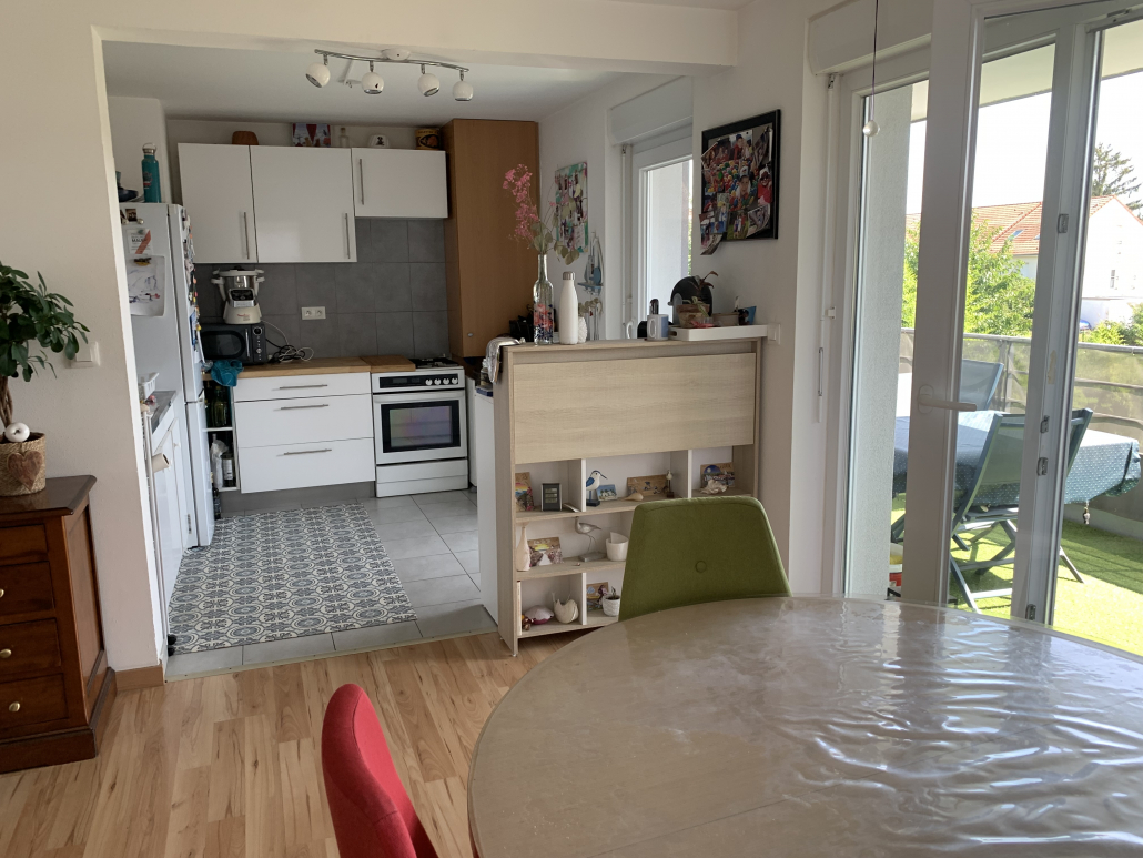Dans un immeuble collectif, F4 de 75m² au 1er étage comprenant une entrée avec armoire murale, cuisine, séjour, 3 chambres, salle de bains, wc, terrasse.
