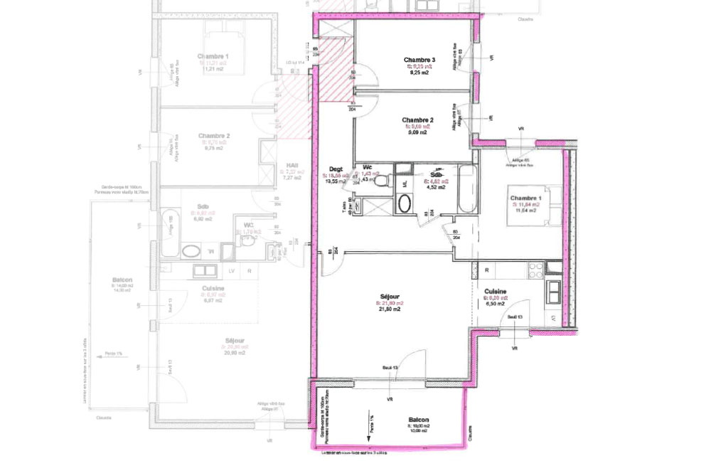 Dans un immeuble collectif, F4 de 78m² au 1er étage comprenant une entrée, cuisine ouverte sur séjour, 3 chambres, salle de bains, wc, terrasse.