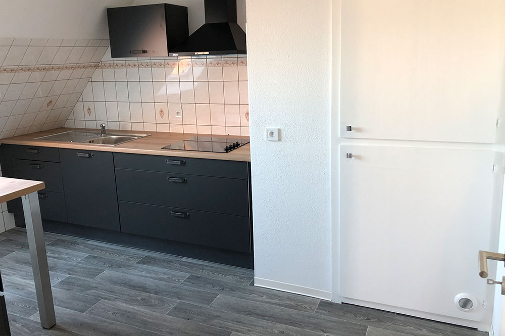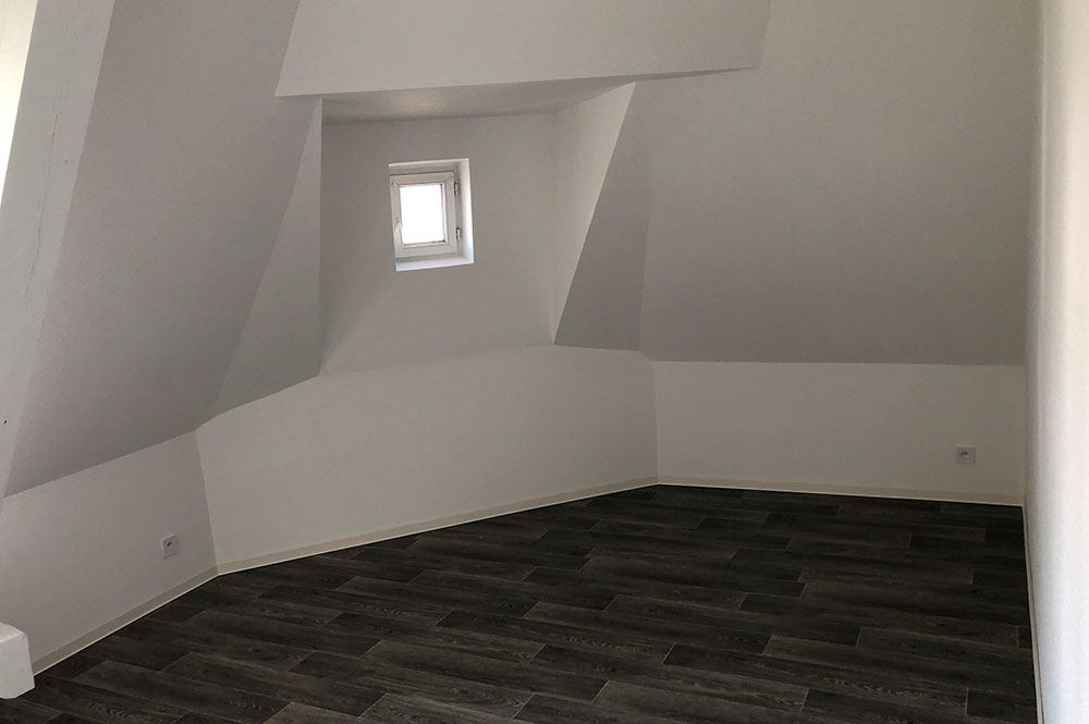 Dans un immeuble collectif, F4 de 85m² en duplex au 1er étage sans ascenseur comprenant une cuisine équipée, un séjour, 3 chambres, salle de bain avec baignoire et wc séparé.