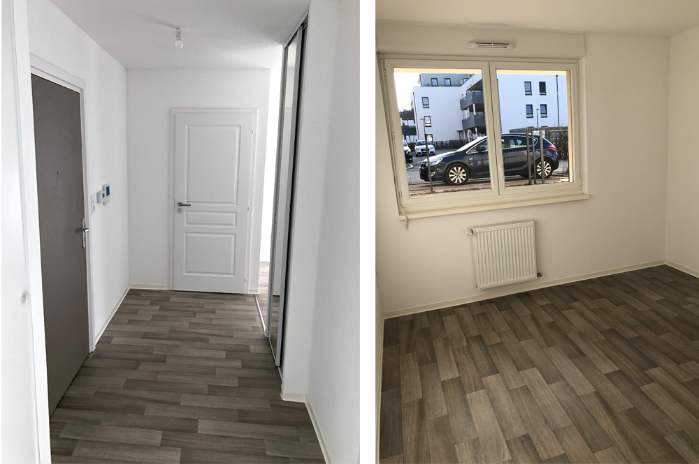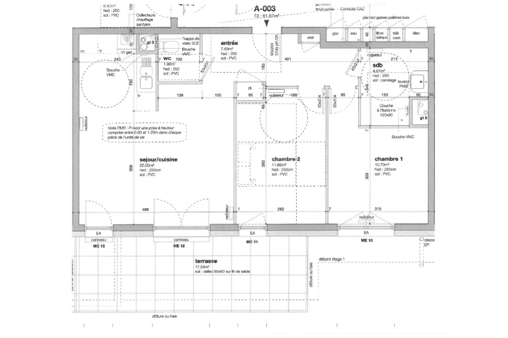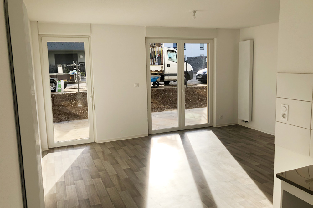 Dans un immeuble collectif, F3 de 61m² au RDC comprenant une entrée avec placards intégrés, cuisine ouverte sur séjour de 25m², 2 chambres, une salle de bain avec douche à l’italienne, un wc séparé, une terrasse de 17m² ainsi qu’un jardin de 38m² orienté au Sud.