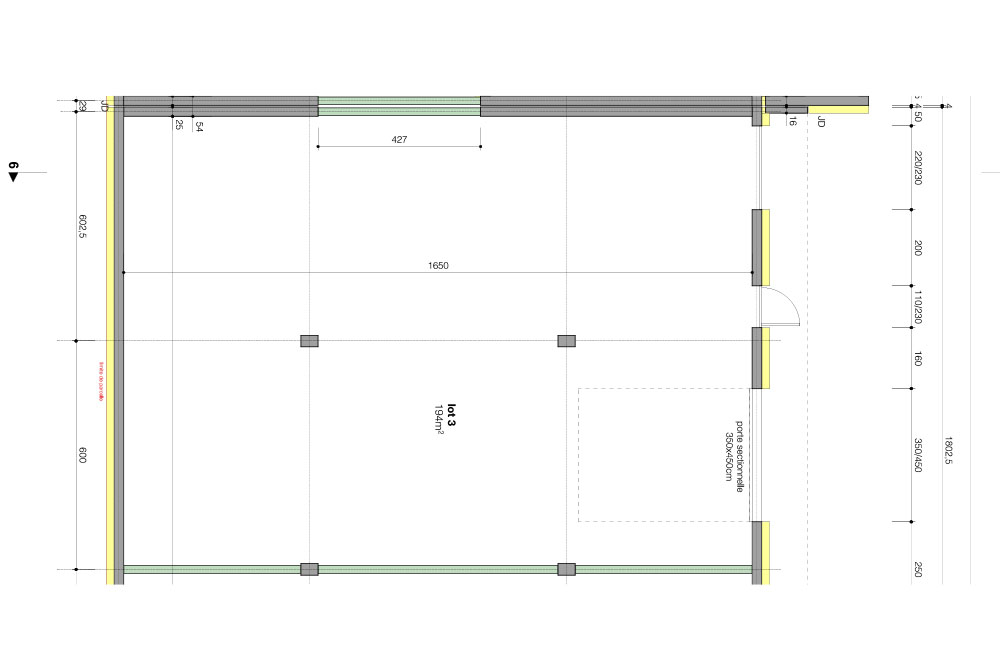 Dans un nouveau bâtiment artisanal, local nu à aménager de 194m² au RDC avec hauteur sous plafond brute de 3,91m à 5,35m, isolation thermique extérieure ép.20cm + isolation thermique de la toiture de 16cm