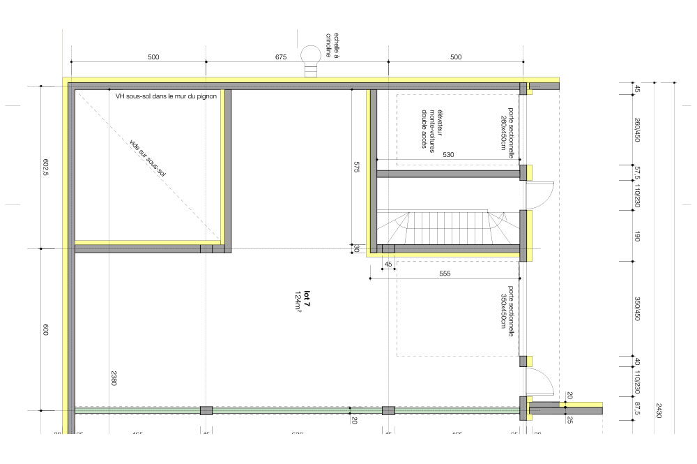 Dans un nouveau bâtiment artisanal, local nu à aménager de 124m² au RDC avec hauteur sous plafond brute de 5,86m à 7,30m, isolation thermique extérieure ép.20cm + isolation thermique de la toiture de 16cm