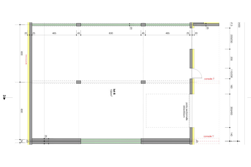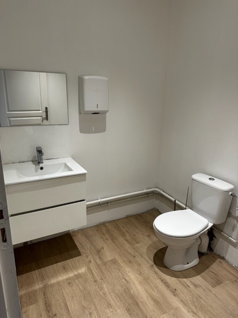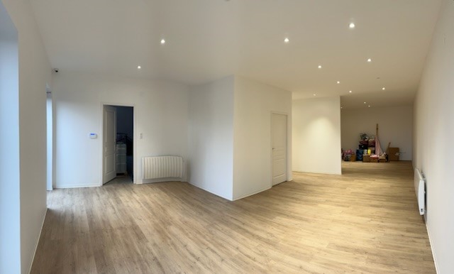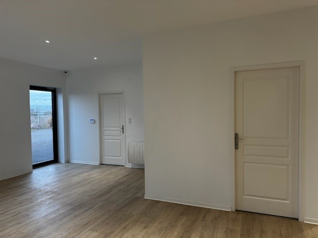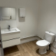Dans un nouveau bâtiment artisanal, local avec coin sanitaire aménagé de 194m² au RDC avec hauteur sous plafond brute de 5,86m à 7,30m pour la partie stockage, isolation thermique extérieure ép.20cm + isolation thermique de la toiture de 16cm